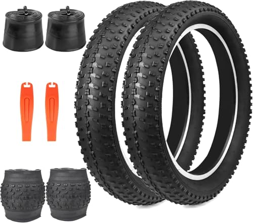BALINGE 2 Pack 26x3.0 Fat Bike Tires ebike Tires Mountain Bike Heavy Duty High-Performance Wear-Resistant E-Bike Mountain Snow Bike Tire 26 x 3 Fat tire,Black (2 Tires + 2 Tubes + 2 levers)
