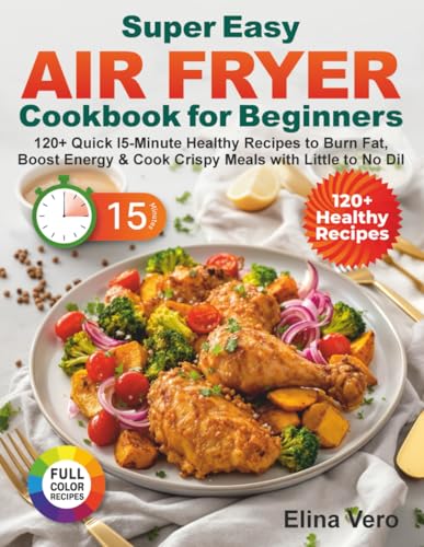 Super Easy Air Fryer Cookbook for Beginners: 120+ Quick 15-Minute Healthy Recipes to Burn Fat, Boost Energy & Cook Crispy Meals with Little to No Oil