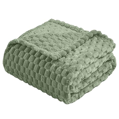 Vessia Filt i flanellfleece, 3D-jacquardfilt, fluffig och varm, för soffa, fåtölj, säng och stol, 300 g/m², supermjuk, mysig och lätt, för alla årstider och heminredning, 127 x 178 cm, salviagrön