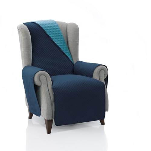 FAVERTI® Överdrag för 1-sits vadderad fåtölj - 55 cm (sittplats) | Krav modell | Marin - Turkos vändbar | Skydd kompatibel med fåtöljer avkoppling och öra | tvättbar duk | Tillverkad i Spanien