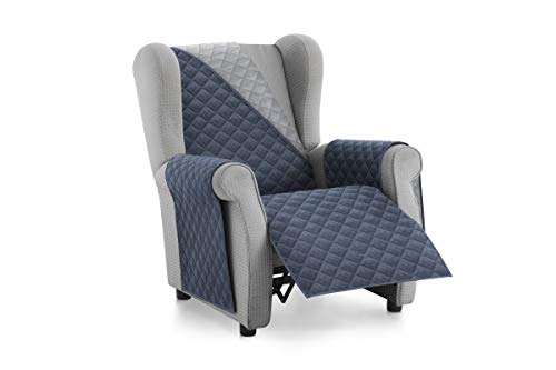 Textilhome - MALU Fåtöljöverdrag / 1-sits sofföverdrag, Vändbart vadderat soffskydd. Blå färg