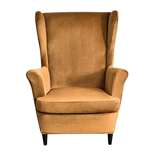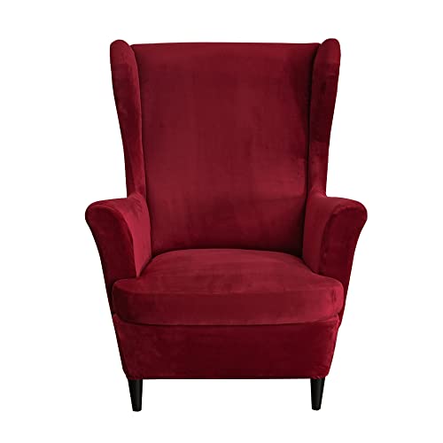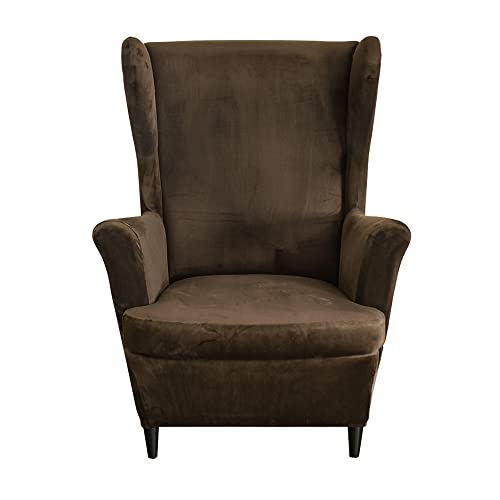 CHNSHOME Fåtöljöverdrag 1-sits med öron stretch 2 delar fåtöljöverdrag sammet överdrag för öronfåtöljer sätesskydd för fåtölj