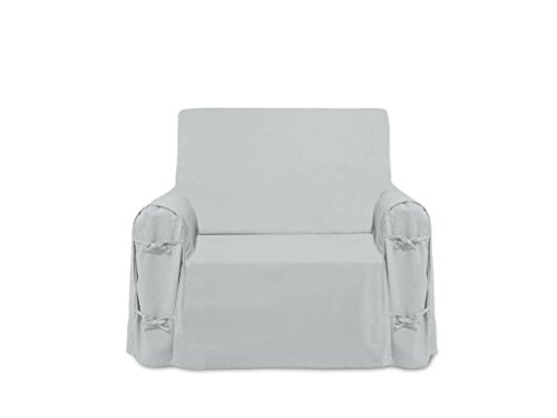 Textilhome - ADELE Fåtöljöverdrag / 1-sits sofföverdrag, VÄNDBAR vadderad soffskydd. Ljusgrå färg
