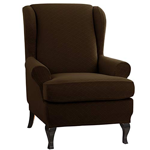 CHUN YI Romb Jacquard fåtöljöverdrag elegant stretchig vilstol med vingrygg stolskydd (vajstol, choklad)