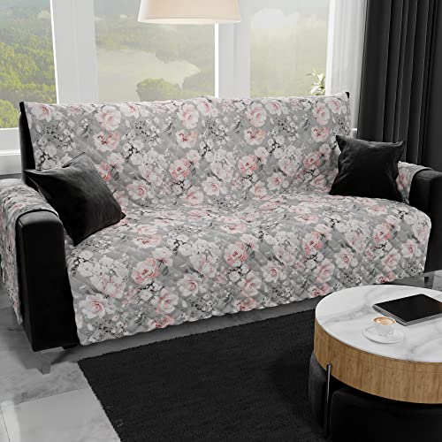 Textilhome - ADELE Fåtöljöverdrag / 1-sits sofföverdrag, VÄNDBAR vadderad soffskydd. Grå färg