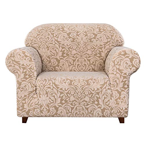 subrtex 1 st soffskydd med armstöd Jacquard Damast stretch fåtöljöverdrag dekorativt skyddssoffa (1-sits, beige brun)