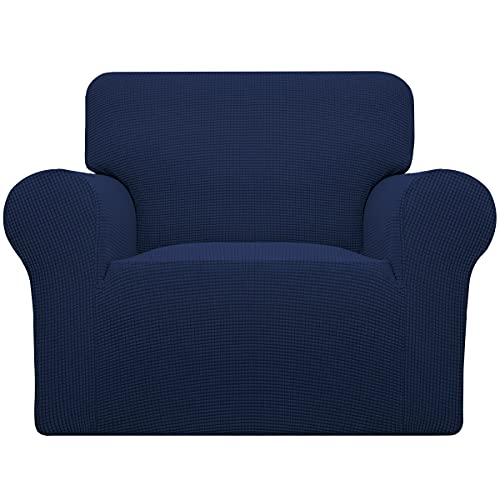 Lättgående töjbart fåtöljöverdrag 1-del sofföverdrag möbelskydd mjukt med elastisk botten för barn spandex jacquardtyg små rutor (stol, marinblå)