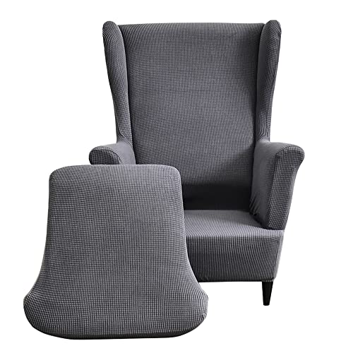 CHNSHOME Överdrag för fåtölj med öron Stretch 1-sits fåtöljöverdrag 2 stycken Stretch överdrag för fåtöljer i örat mörkgrå