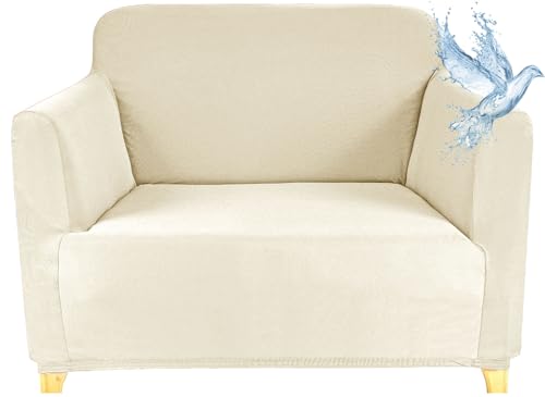 1-sits sofföverdrag, vattentätt stretch fåtöljöverdrag med armstöd, soffskydd med armstöd, fläcksäkert skyddsöverdrag, sofföverdrag i krämvit