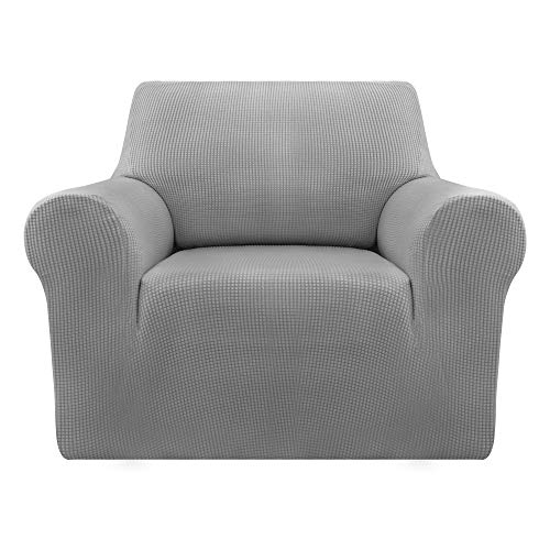 Deconovo Soffskydd, anpassat fåtöljöverdrag, soffskydd i töjbart jacquardtyg, skrynkelfritt, halkfritt sofföverdrag (stol, ljusgrå)