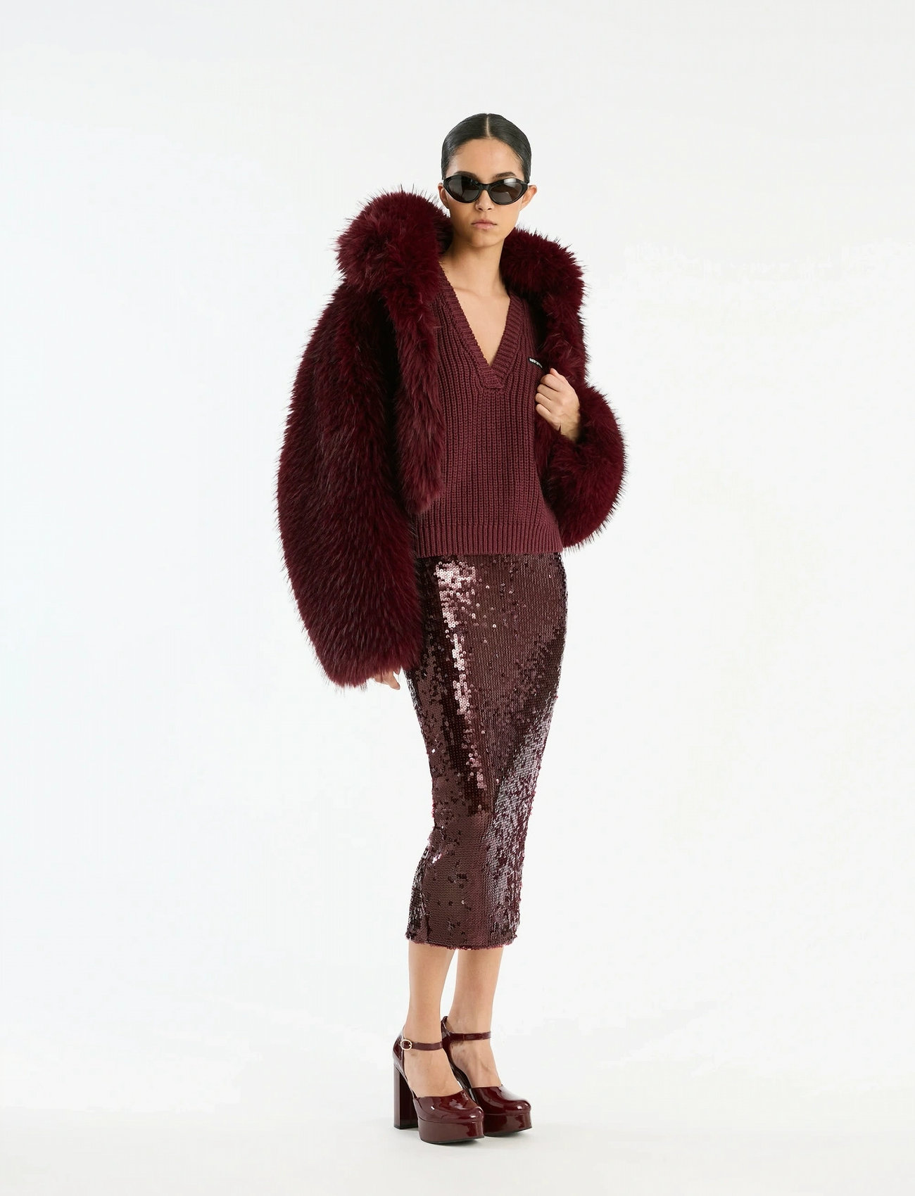 ROTATE Birger Christensen Faux Fur Crop Jacket - Burgundy - L/XL
