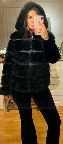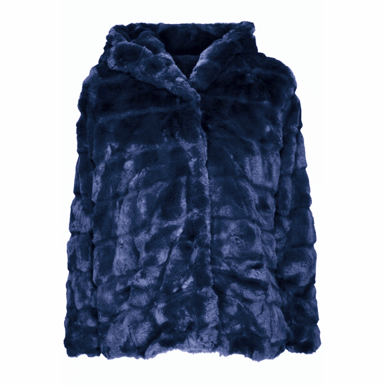 Huda Hooded Faux Fur Jacket Navy: S/M
