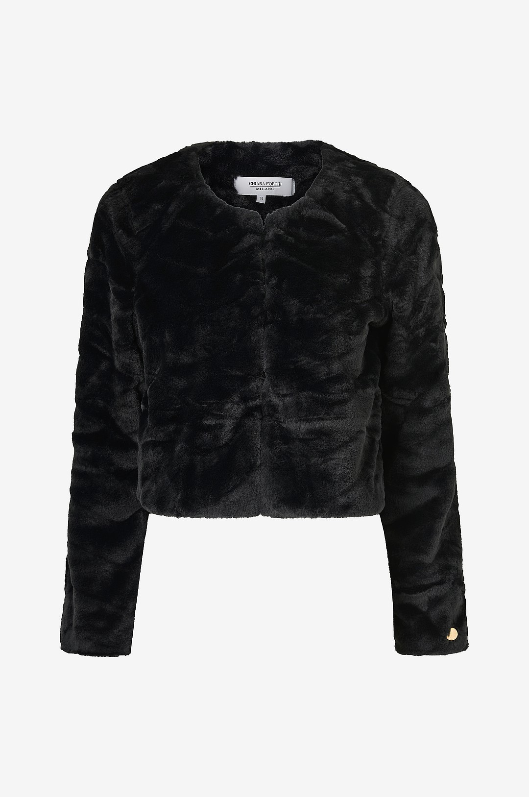 Faux Fur Crop Jacket Black ROTATE Birger Christensen