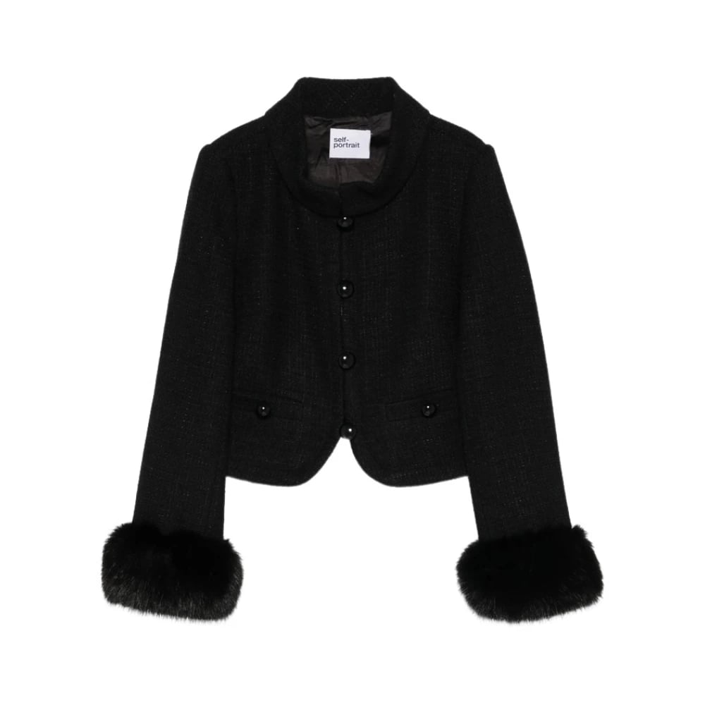 Self Portrait, Jackor , Dam, S, Polyester, Boucle Faux Fur Cuff Jacket