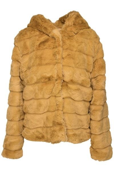 Huda Hooded Faux Fur Jacket Yellow: M/L