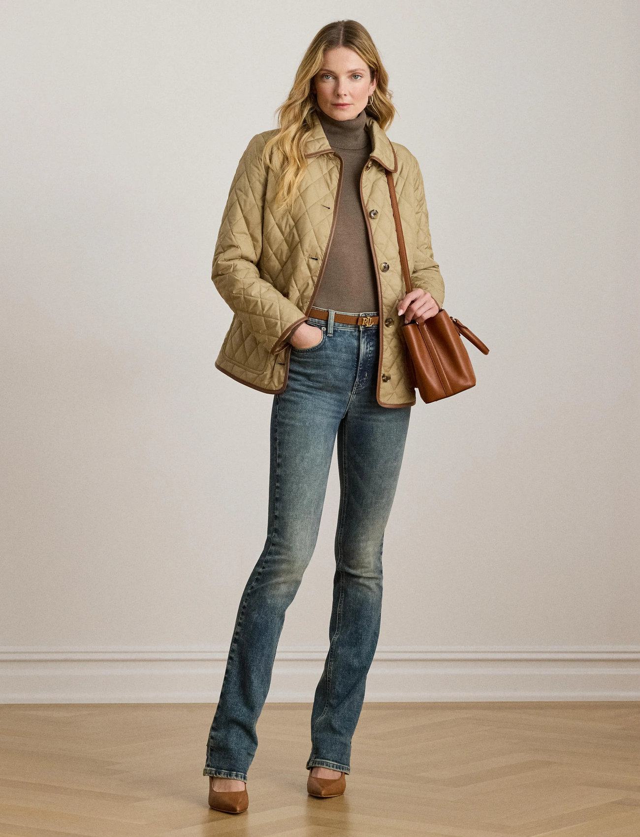 Lauren Ralph Lauren Faux-Leather-Trim Diamond-Quilted Jacket - Beige - XS