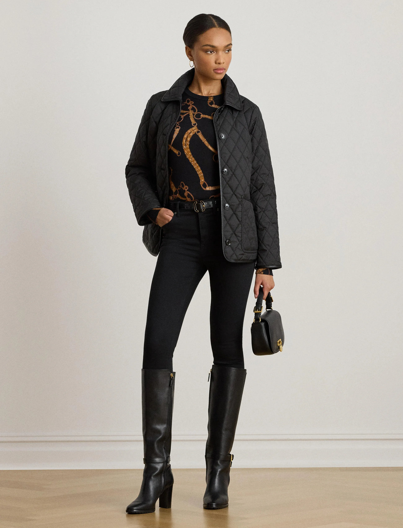 Lauren Ralph Lauren Faux-Leather-Trim Diamond-Quilted Jacket - Black - L