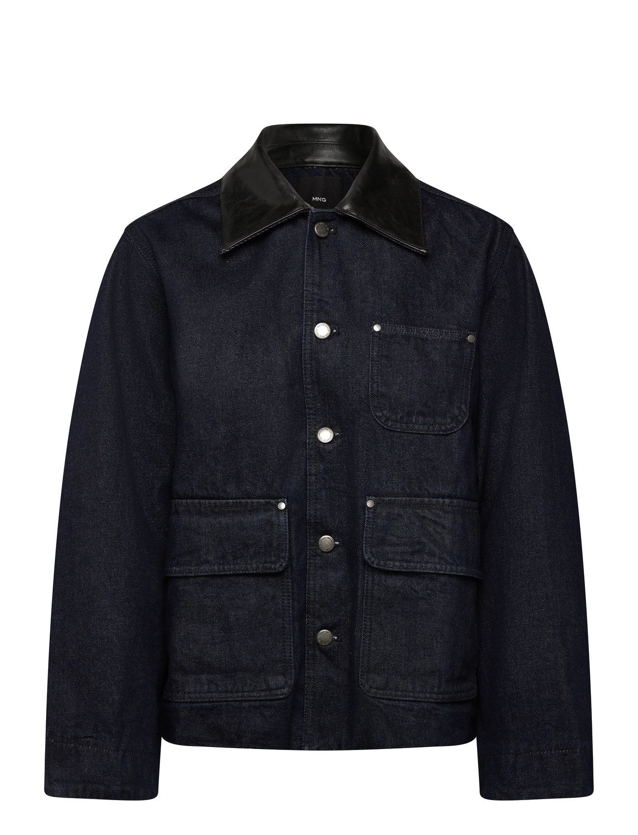 Mango Denim Jacket With Faux Leather Effect Collar Marinblå