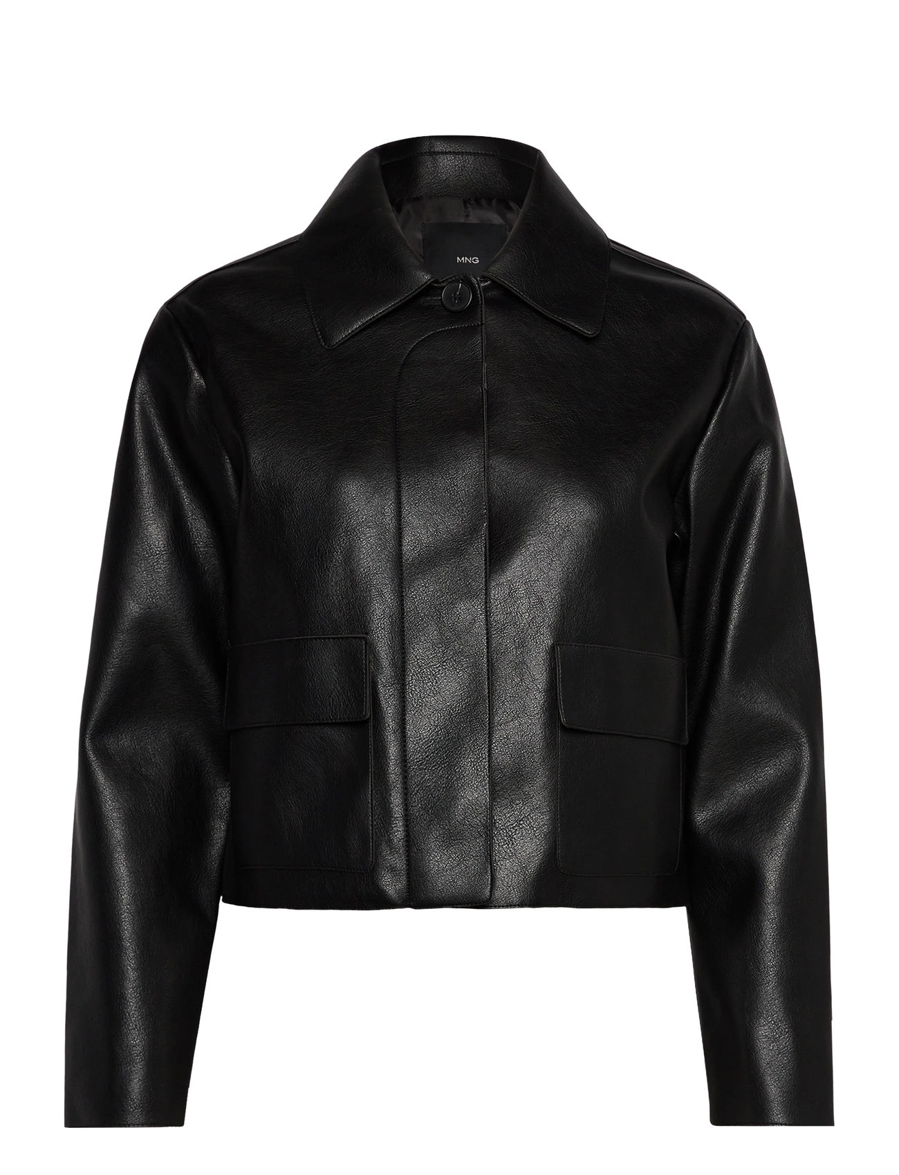 Mango Faux Leather Effect Jacket With Pockets Svart