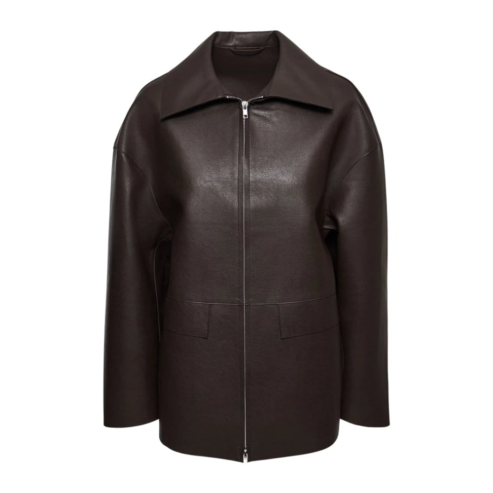 Mango Faux-Leather Jacket With Pockets - Brown - S