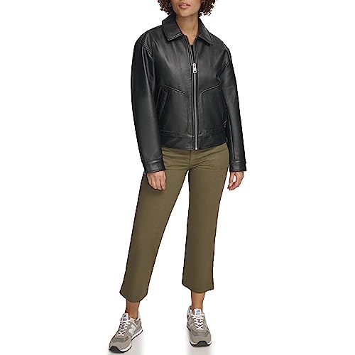 Levi's Women's Faux Leather Lightweight Dad Bomber Jacket, Pebbled Black
