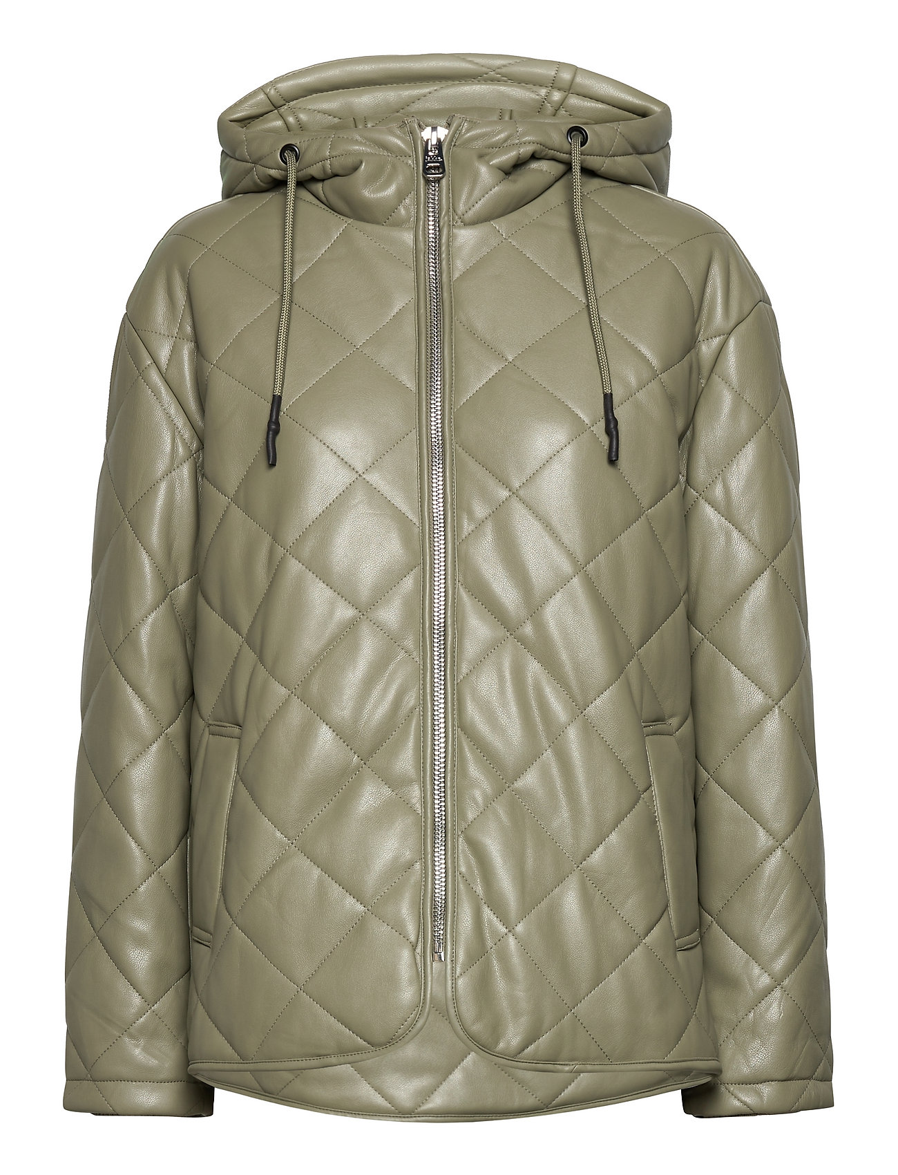 Becky Faux Leather Quilted Short Bomber Jacket Green Jakke