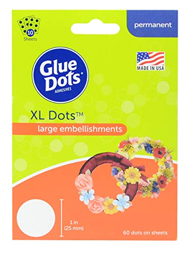 Glue Dots 6100FC dubbelsidiga självhäftande prickar, 10 perforerade ark med 60 XL-prickar, permanent, rund, 25 mm, mångsidig användning, gör-det-själv-hantverk, trä, metall och kort, design