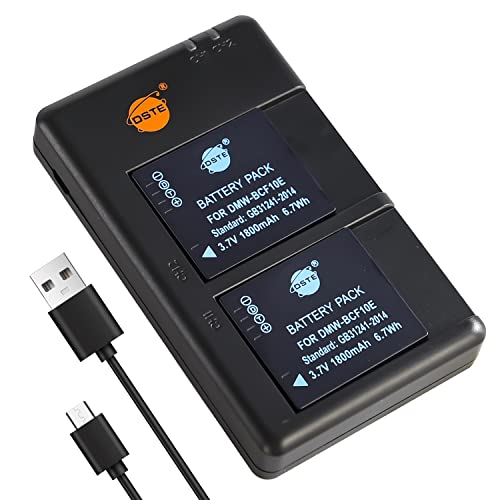 DSTE 2 st DMW-BCF10E (1 800 mAh/3,7 V) batteriladdare set kompatibel med Panasonic Lumix DMC-FC25 DMC-FH1 DMC-FT1 DMC-FT3 DMC-FT4 DMC-FX48 DMC-FX68 DMC-FX50 som DMC-FX50 som DMW-BCF 10PP