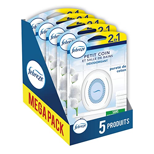 Febreze Desodoriserande, 5 enheter, för litet hörn och badrum, för eliminering och förebyggande av ihållande lukt, fräschar insidan, bomullsrenhet