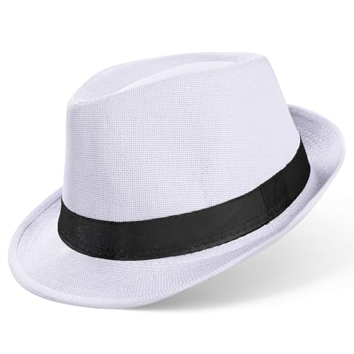 Babeyond Trilby Fedora-hatt för män, 1920-talsstil, filthatt, Panama-hatt, kort brätte, sommarhatt med band, A-vit, one size