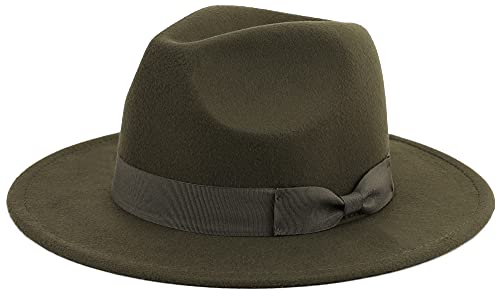 Besoogii klassisk bred kant kvinnor män Fedora hatt med bältesspänne filt panamahatt, Rosett-oliv, One Size