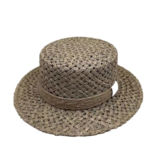 Solhatt dam solhattar Sommar Dam Båtare Strandhatt Bred brätte Kvinnlig Hatt Dam Klassisk Platt Bowknot Straw Sol Hat Dam Fedora Hattar Panamahattar (Color : A, Size : One size)