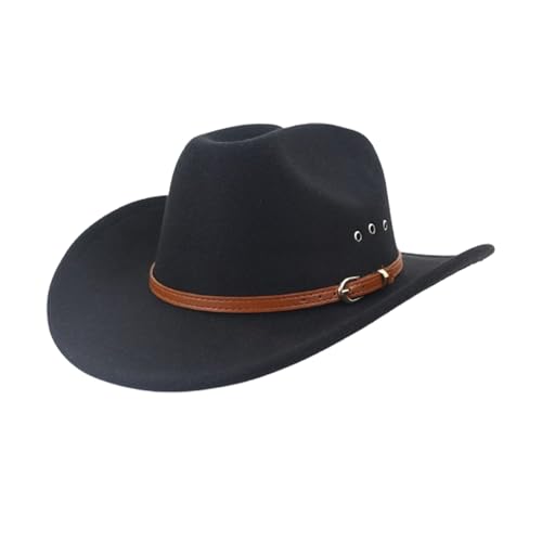 Kvinnor män western cowboyhatt premium brett brätte Fedora snygg bälteshatt etnisk stil bekväm för fest utomhusaktiviteter speciella evenemang daglig användning, Svart, One size M