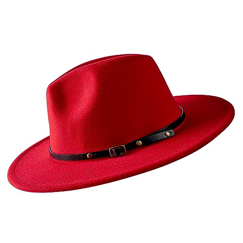 besbomig Kvinnor Jazz Hatt Enfärgad Elegant Vinter Varm Cap för Lady Gentleman Unisex Fedora 55-58CM Justerbar Casual Hats,Röd