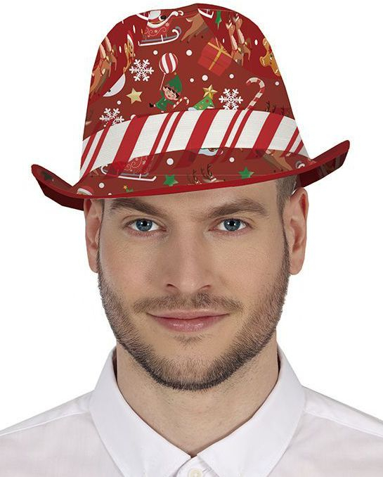 Röd Fedora Hatt med Julmotiv