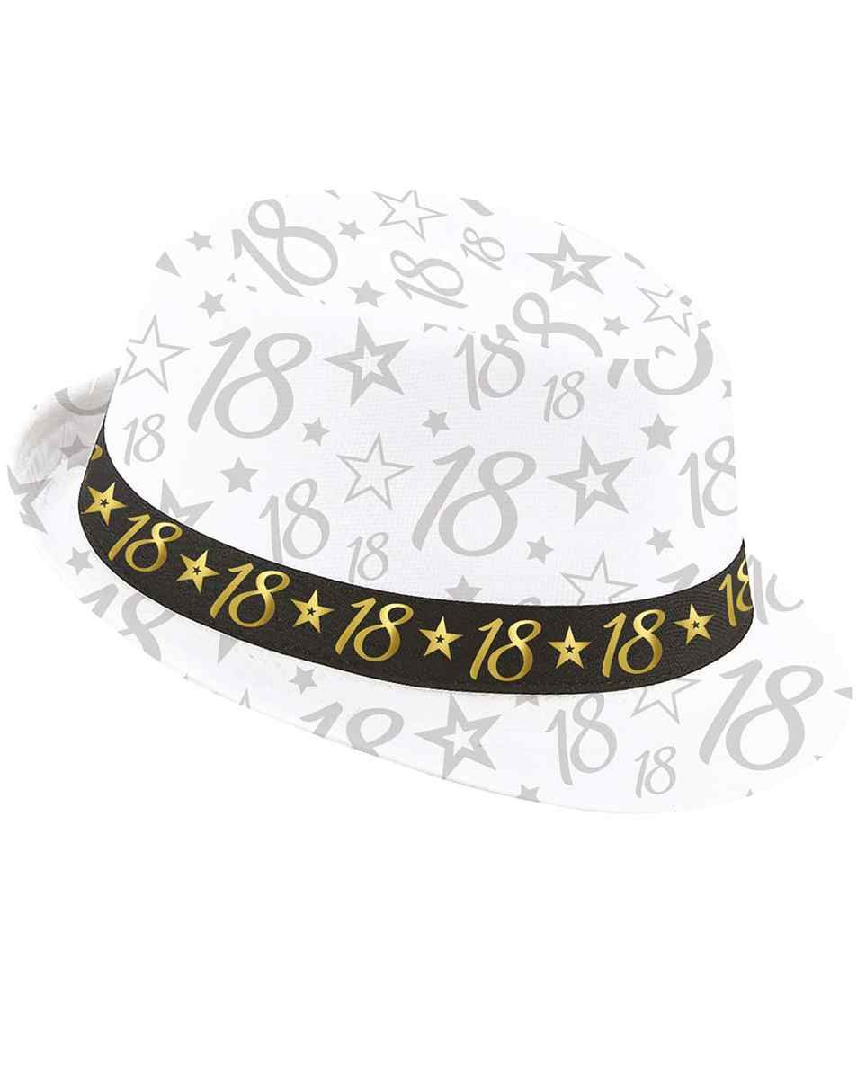 Vit Fedora-hatt med svart band och nummer - 18 ÅR