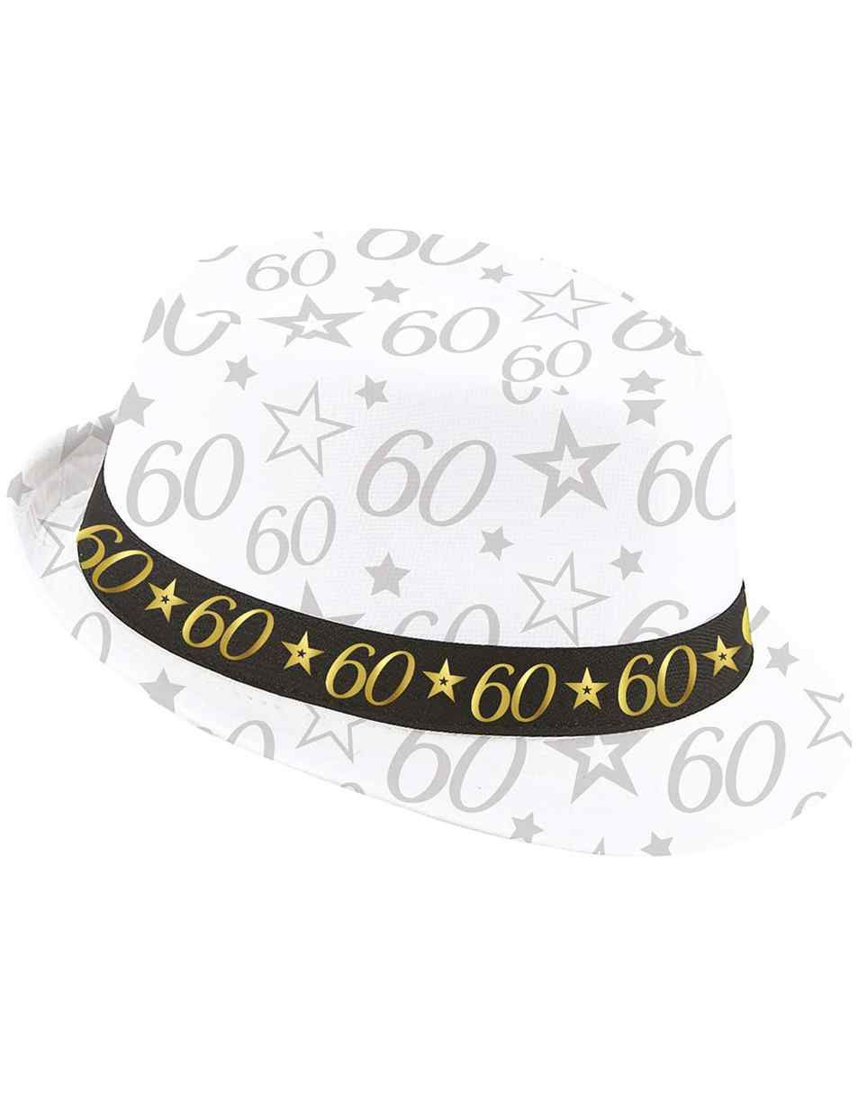 Vit Fedora-hatt med svart band och nummer - 60 ÅR