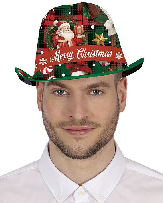 Fedora Hatt med Julmotiv och "Merry Christmas" Text