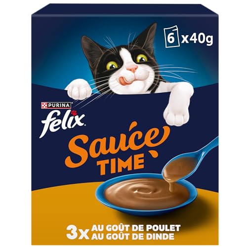 FELIX | Tidsås | Kompletterande mat i oemotståndlig sås för vuxna katter | Tillverkad med kvalitetsingredienser | kyckling, kalkon | färskhetspåsar | 6 x 40 g