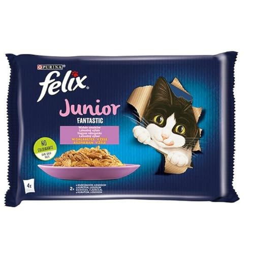 FELIX Så gott som det ser junior kattunge mat våt i gelé, blandade sorter, förpackning med 6 (6 x 12 påsar med 85 g)