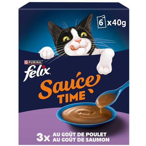 FELIX | Tidsås | Kompletterande mat i oemotståndlig sås för vuxna katter | Tillverkad med kvalitetsingredienser | med kyckling, lax | färskhetspåsar | 6 x 40 g
