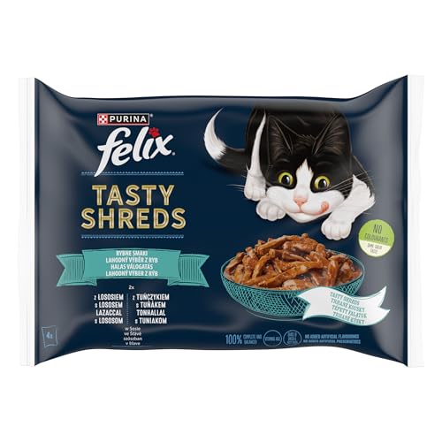 FELIX Ångade skivor fuktig mat för vuxna katter skivor med lax och tonfisk i gelé 48 80 g påsar