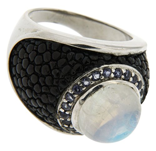 Renato Fellini damring 925 silver månsten rund slipning flerfärgad – HEJGR5910rmsio, månsten, Månsten
