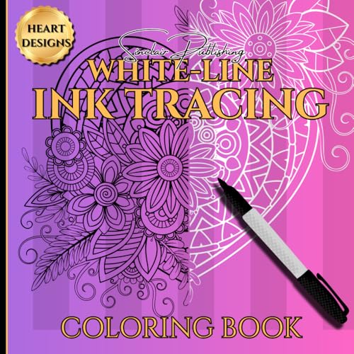 WHITE-LINE INK TRACING COLORING BOOK - HEART DESIGNS: 8.5 x 8.5/50 Pg/ Ink Tracing Coloring Book/ Use with Felt Tip Pens/ Art Therapy & Relaxation