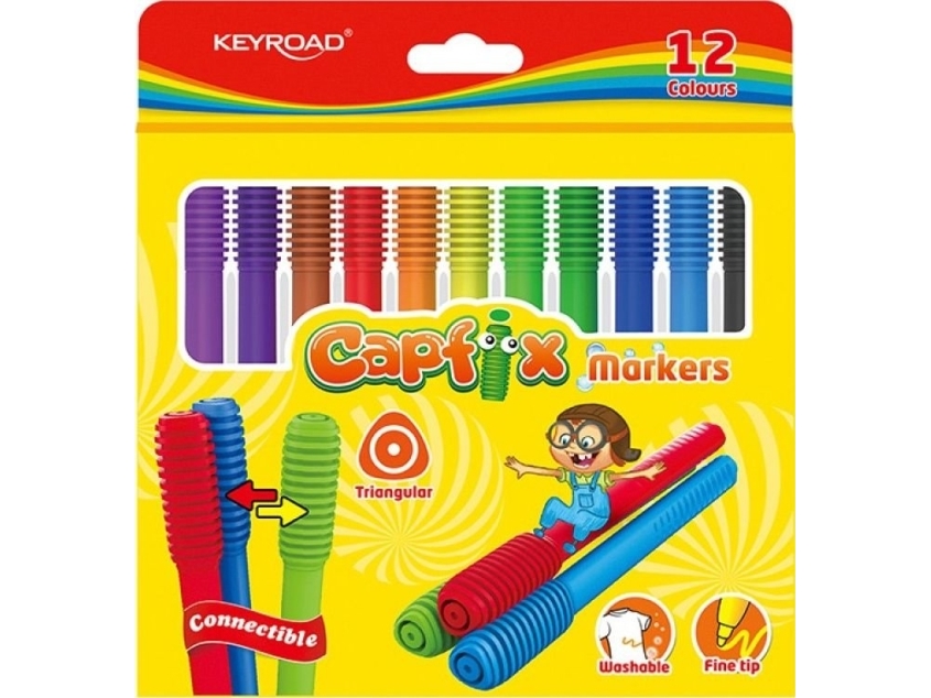 Keyroad Felt-Tip Pens Keyroad Capfix Markers, 12Pcs, Triangular, Washable, Combined, Pendant, Assorted Colors