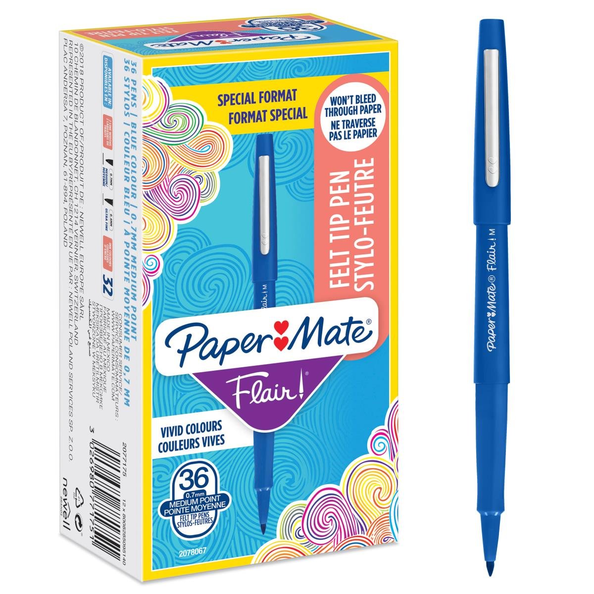 Paper Mate - Flair Felt Tip Pens - Blue - 36 Count