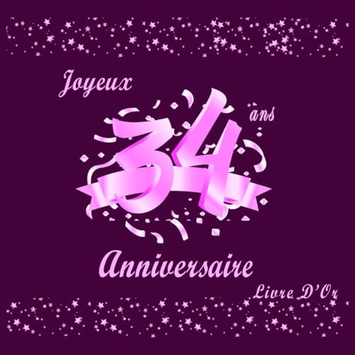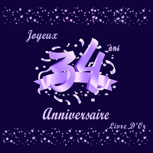 Livre D'or Anniversaire 34 Ans: Decoration Anniversaire 34 Ans, Rose, Violet, Femme, Homme, Joyeux Anniversaire