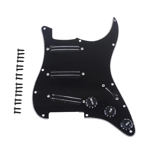 Musiclily 11 Hål HSS Prewired Plektrumskydd Strata Loaded Pickguard med Single Coil Humbucker Pickups Set för Fender USA/Mexikansk Stratocaster Squier Elgitarr, 3-lager Svart