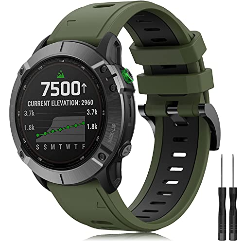 MoKo Watch Strap Compatible with Garmin Fenix 7/7 Pro/6/6 Pro/5/5 Plus/Forerunner 965/955/945/Instinct Solar/Instinct 2, Quick Fit 22mm Soft Silicone Replacement Band Sport Wristband, Army Green/Black