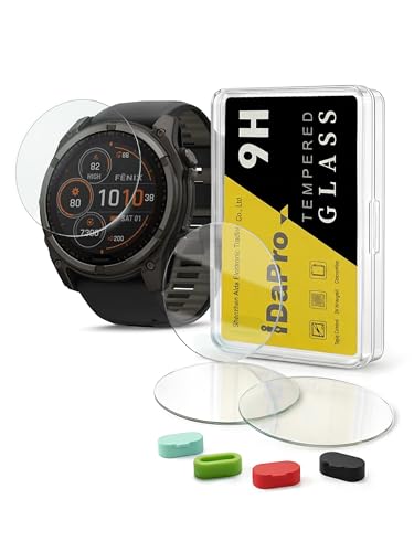 iDaPro [4-pack] skärmskydd för Garmin Fenix 8 AMOLED 51 mm/Fenix 8 Solar 51 mm klocka + silikon dammproppar härdat glas repfri bubbelfri